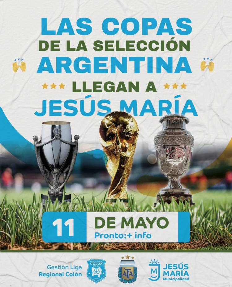 En su recorrida por diversos puntos del país, la Copa América, la Finalissima y la Copa del Mundo llegarán a Jesús María el próximo 11 de mayo.