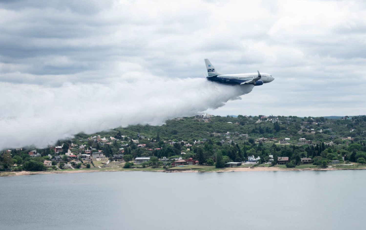 Como parte de esta experiencia, llegó a nuestra provincia un Boeing 737 Fireliner (LV-KJS), el avión de combate de incendios más grande de Latinoamérica, con capacidad para transportar hasta 15.000 litros de agua o retardante.